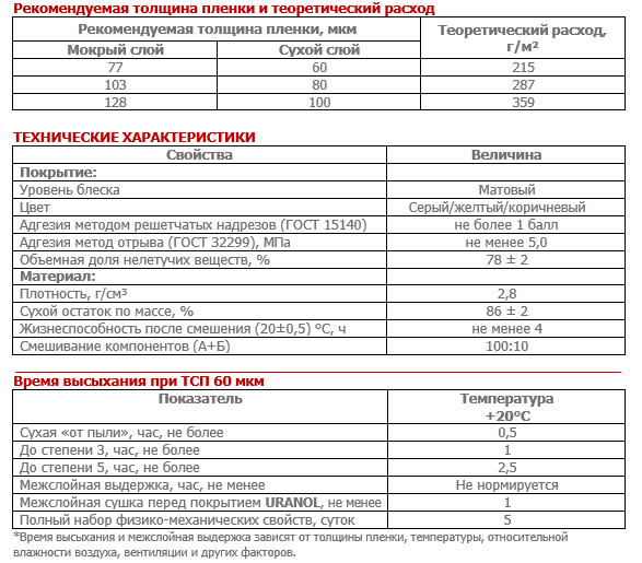- Температурный режим эксплуатации покрытия от -60°С до +120°С.